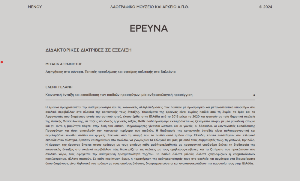 The Folklore Museum and Archive of the Faculty of Philosophy of the Aristotle University of Thessaloniki was established during the first years of the operation of the University of Thessaloniki, at the end of the 1920s, upon the proposal of the great folklorist Stilpon Kyriakidis, who was then holder of the Chair in “Religion of Ancient Greeks, their Private Life and Folklore.”
