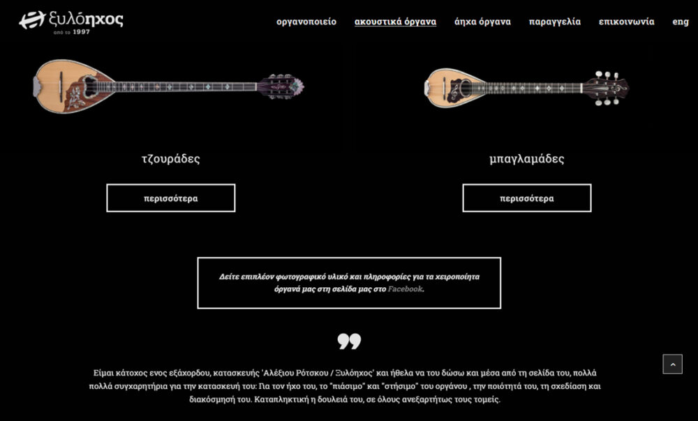 The construction and use of bouzouki constitutes a representation of the paths that tradition unfolds in the neighborhoods of the present. In such a path lies the beginning of our story in 1997, in Kapadokias street in Thessaloniki. Driven by his passion for music and craftsmanship, Alexis Rotskos opened the first workshop. As is the case with all ‘first of the kind’ things, this instrument making workshop became a kind of school, fostering continuous training and experimentation. Six years later, the talented craftsman, already an accomplished musical instrument maker, met Yiannis Tsiligiris, a young pianist, who, attracted by the smell of inspiration, decided to use his musical instinct and his European experience at the service of making traditional stringed musical instruments. That’s how Xiloihos was born.